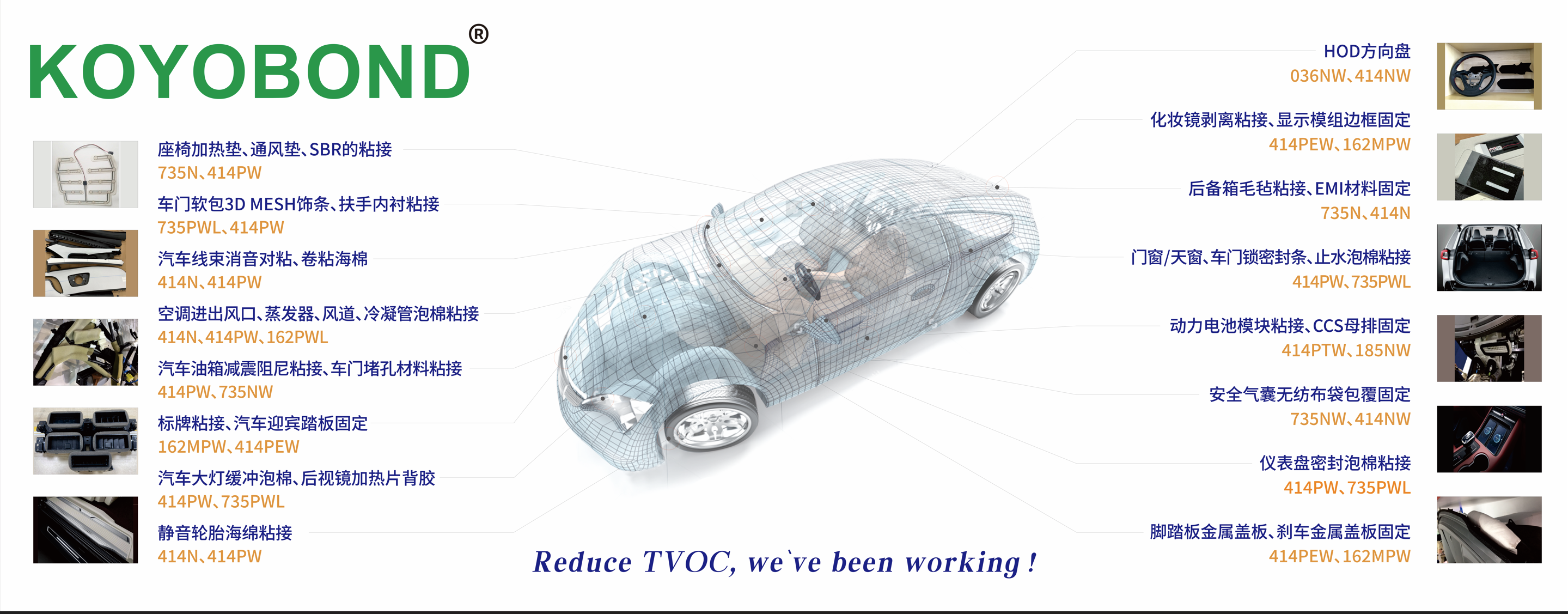 日本光洋產業(yè)從1975年開發(fā)第一款水性壓敏膠粘劑KR-171開始,至今已有40年歷史。在40年間又陸續(xù)開發(fā)了多款具有劃時代意義的水性壓敏膠粘劑產品,幾乎囊括了汽車內外飾的所有粘接應用。隨著汽車內外飾不斷推出新材料、新工藝,對粘接應用也帶來了新的挑戰(zhàn),但是光洋產業(yè)并未在既有成績上止步不前,我們一直在努力迎合市場需求,因為我們深知創(chuàng)新才是企業(yè)可持續(xù)發(fā)展的源動力。