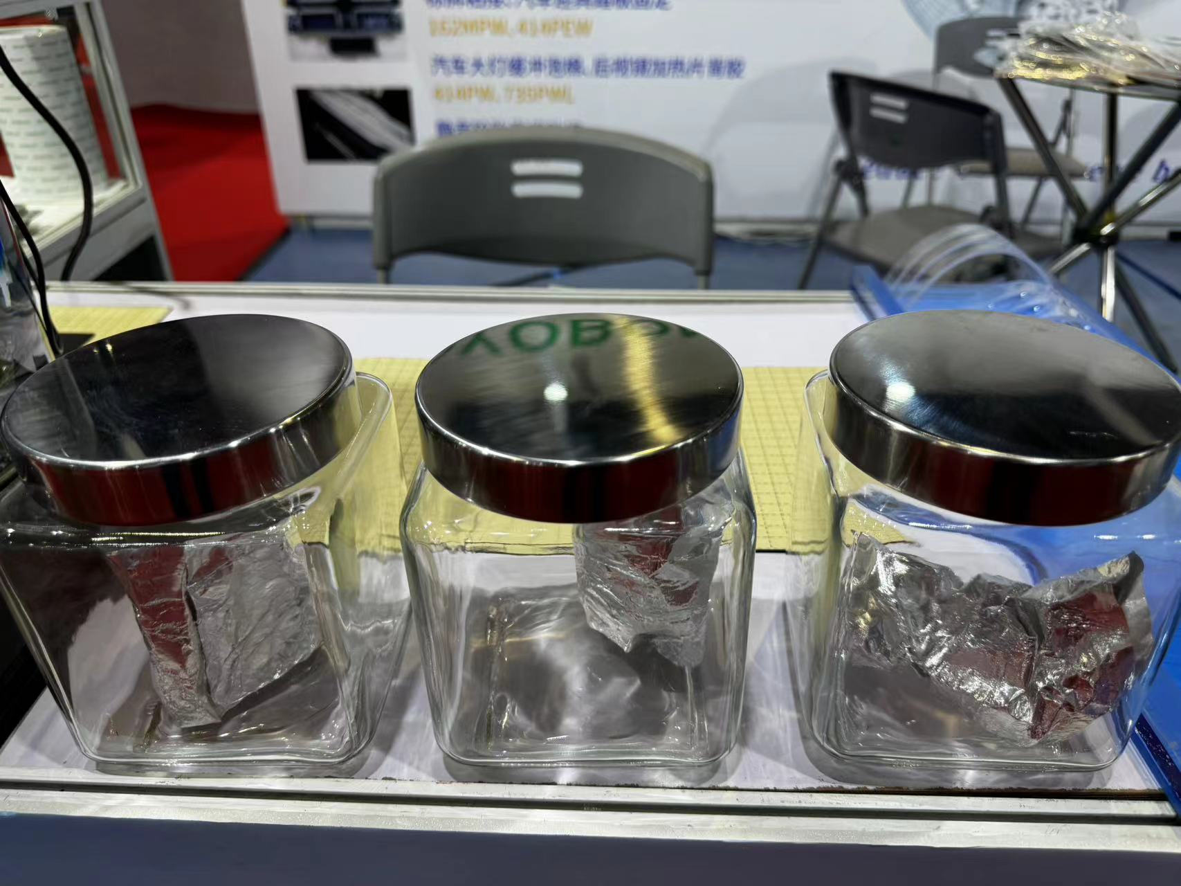 現場展示的這三只氣味瓶其中膠帶樣品為KR-414PW,在單面貼合鋁箔后,取樣面積按照100*200mm,然后放置于80℃烘箱中2小時后取出,冷卻至常溫后測試氣味。通過現場客戶嗅辨,均反饋氣味在3.0至3.5之間,沒有明顯的刺激性,對該量產品的氣味表現給予了積極肯定。對KR-414系列應用于空調風管保溫、空調風口、HOD方向盤、座椅SBR傳感器、內飾線束消音海綿等用途加分不少!