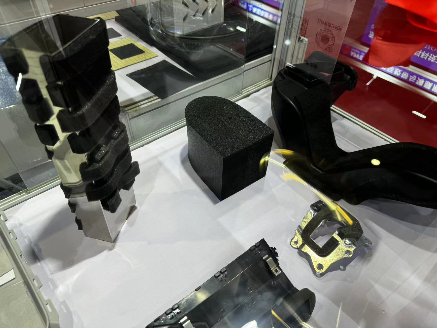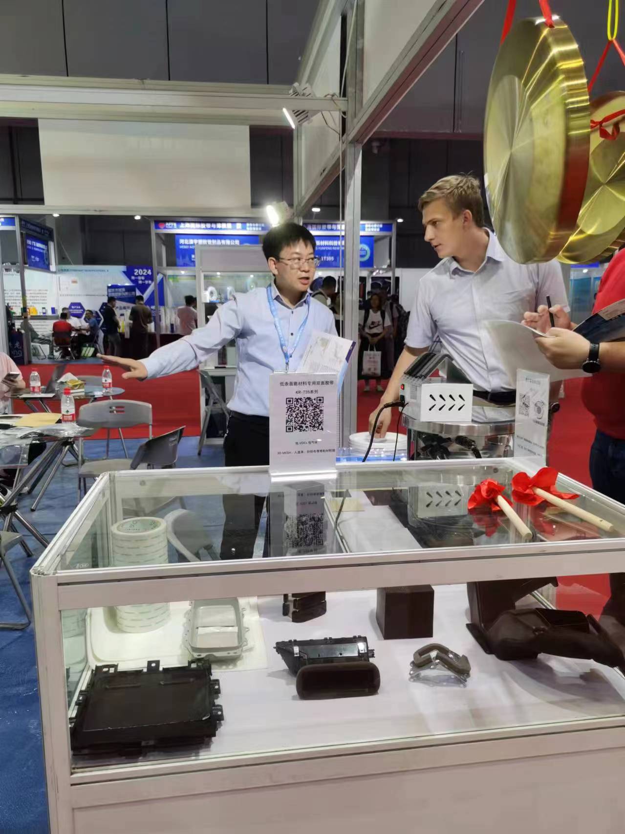 我們現場展示了30kg密度PUR海綿、150kg密度EPDM開孔及閉孔海綿在不銹鋼方管上的小斷面折彎耐反彈效果,50mm厚度PUR海綿對粘耐反彈效果。同時還展示了帶潤滑油脂的車門鎖五金件海綿粘貼、車載無線充電托盤與仿麂皮粘貼、3D MESH與車門飾條骨架粘貼的實物樣品,也讓客戶親眼見識了水性壓敏膠在低表面能材料粘接應用的優(yōu)勢,免底涂、更高效,讓客戶對水性壓敏膠的性能有了全新的認知。