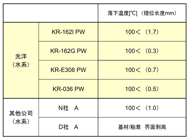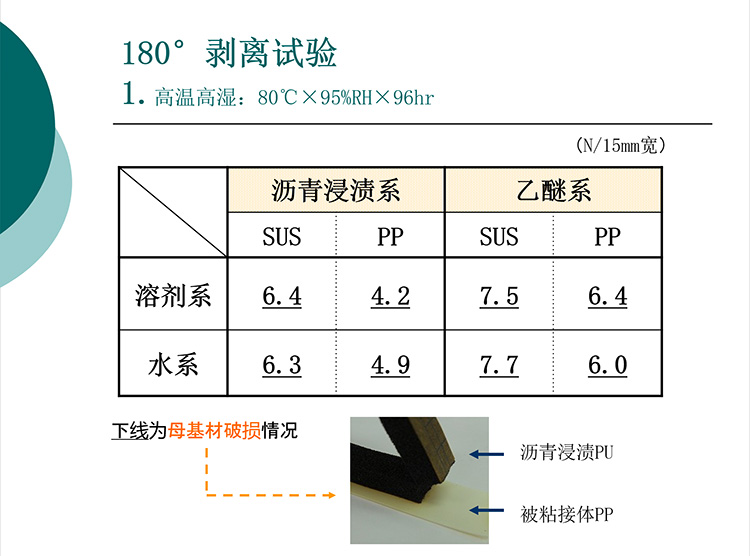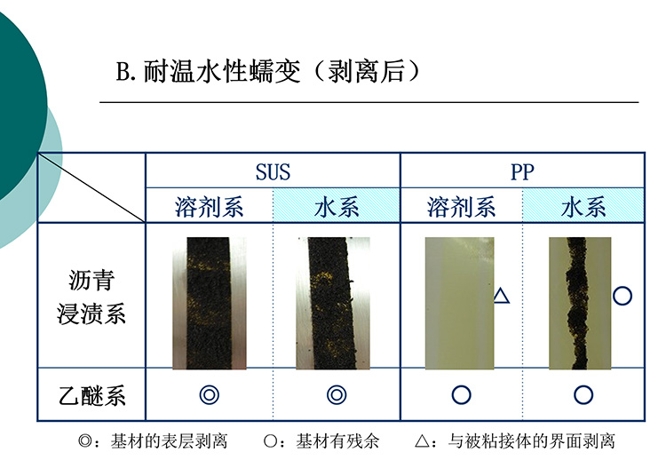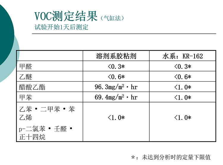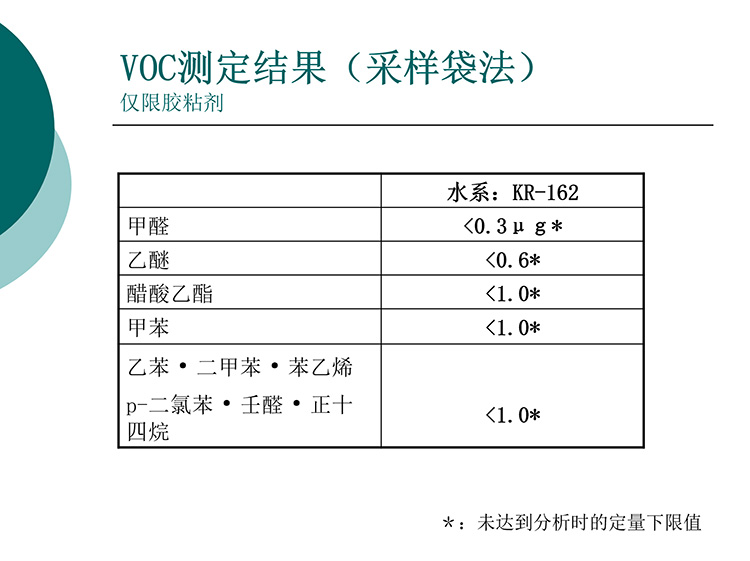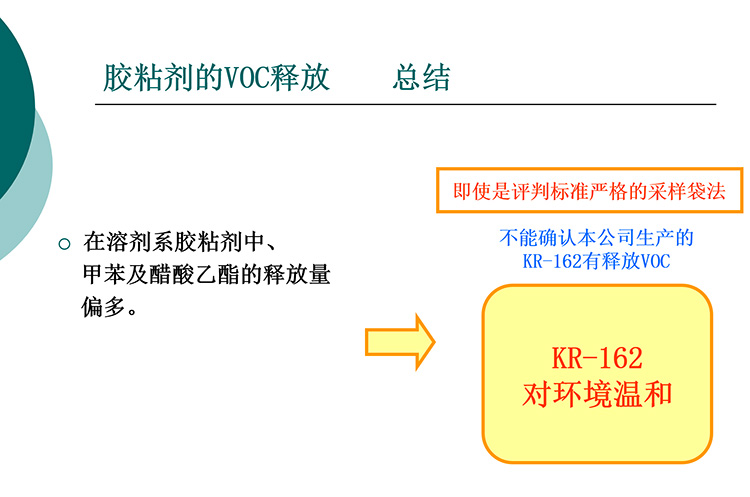 KOYOBOND®水性壓敏膠KR-162i(圖表中簡寫為“水系”)與N公司的常規(guī)溶劑型壓敏膠(圖標(biāo)中簡寫為溶劑系)做粘性測試及VOC釋放對比。