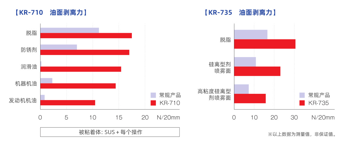 | KR-710 NW | 0.07 | 16.0 | 對(duì)部分潤滑油附著表面的粘性良好 |